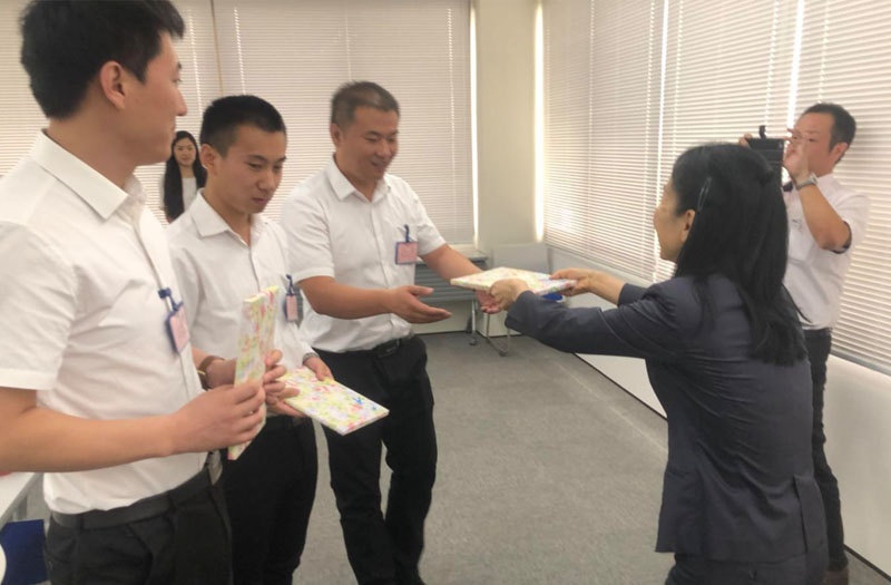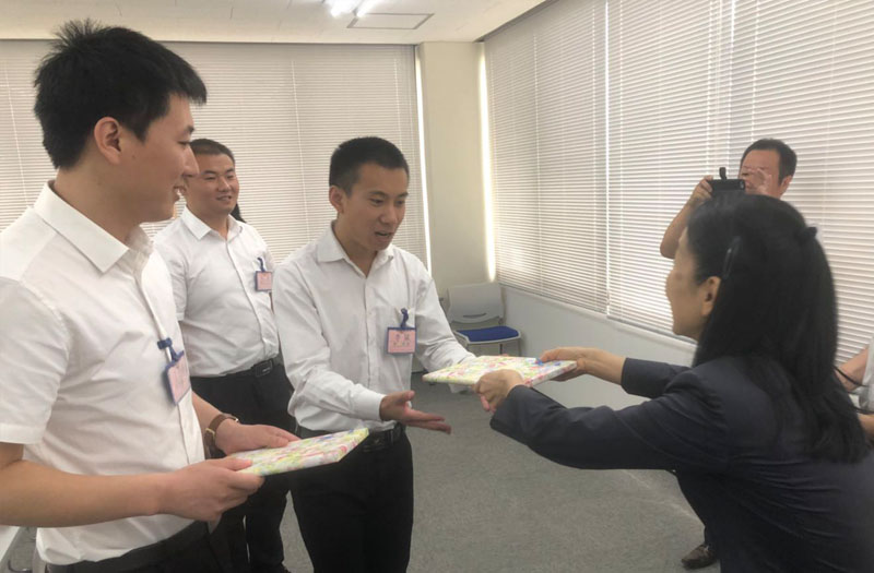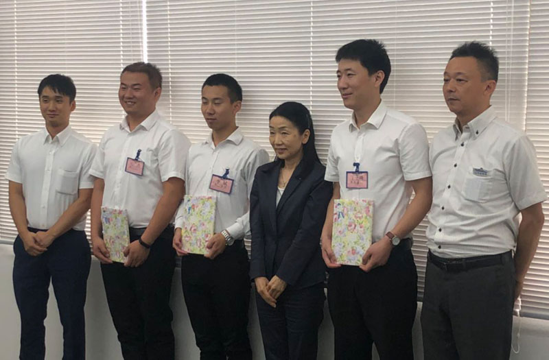 转眼间6月12日入国的小伙伴们已经配属啦。企业为新配属的三名小伙伴准备了午餐欢迎会。会长也非常重视,亲自来参加了3名同学的欢迎会,并为大家准备了小礼物。公司前辈带领大家熟悉工厂环境,讲解在公司要注意的各项规章制度。公司的生活指导老师也为大家细心的准备了各项生活用品。未来3年的技能实习生活要加油哦。