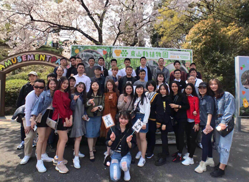 一起接触大自然赏樱花、喂小鹿。
